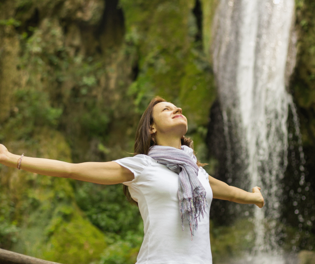 -Inspirez en imaginant l’énergie de la nature monter dans votre corps